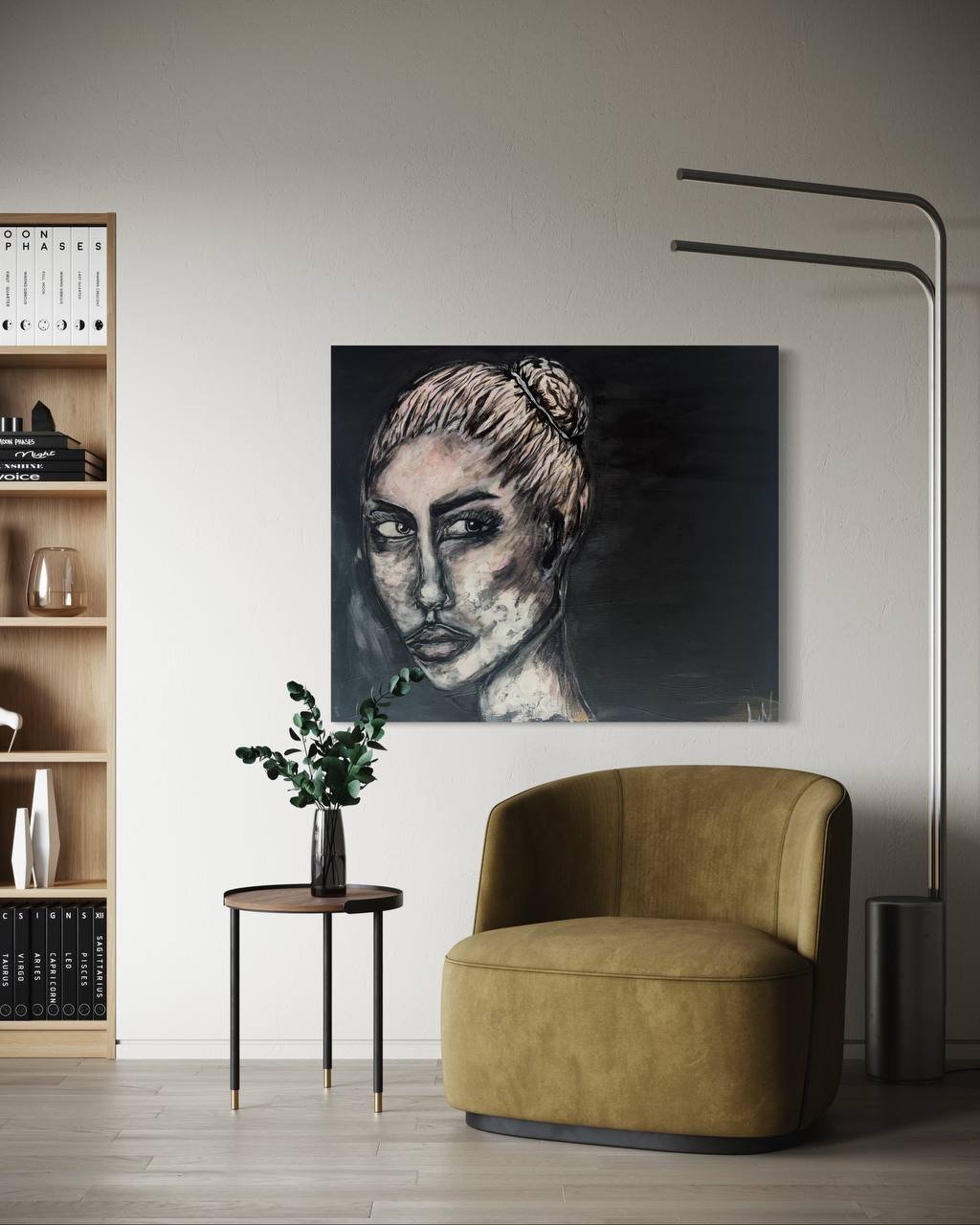 This evocative artwork delves into the profound depth of human experience, highlighting the strength and growth that emerge from introspection and the acceptance of imperfections. The monochromatic palette enhances the raw emotion and vulnerability captured in the portrait, making it a powerful statement on resilience and self-discovery.